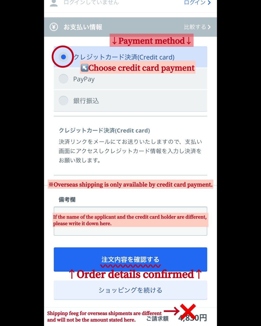 1:Order ¢ª 2:Receive an email confirming the shipping fee ¢ª 3:Credit card payment ¢ª 4:Shipping